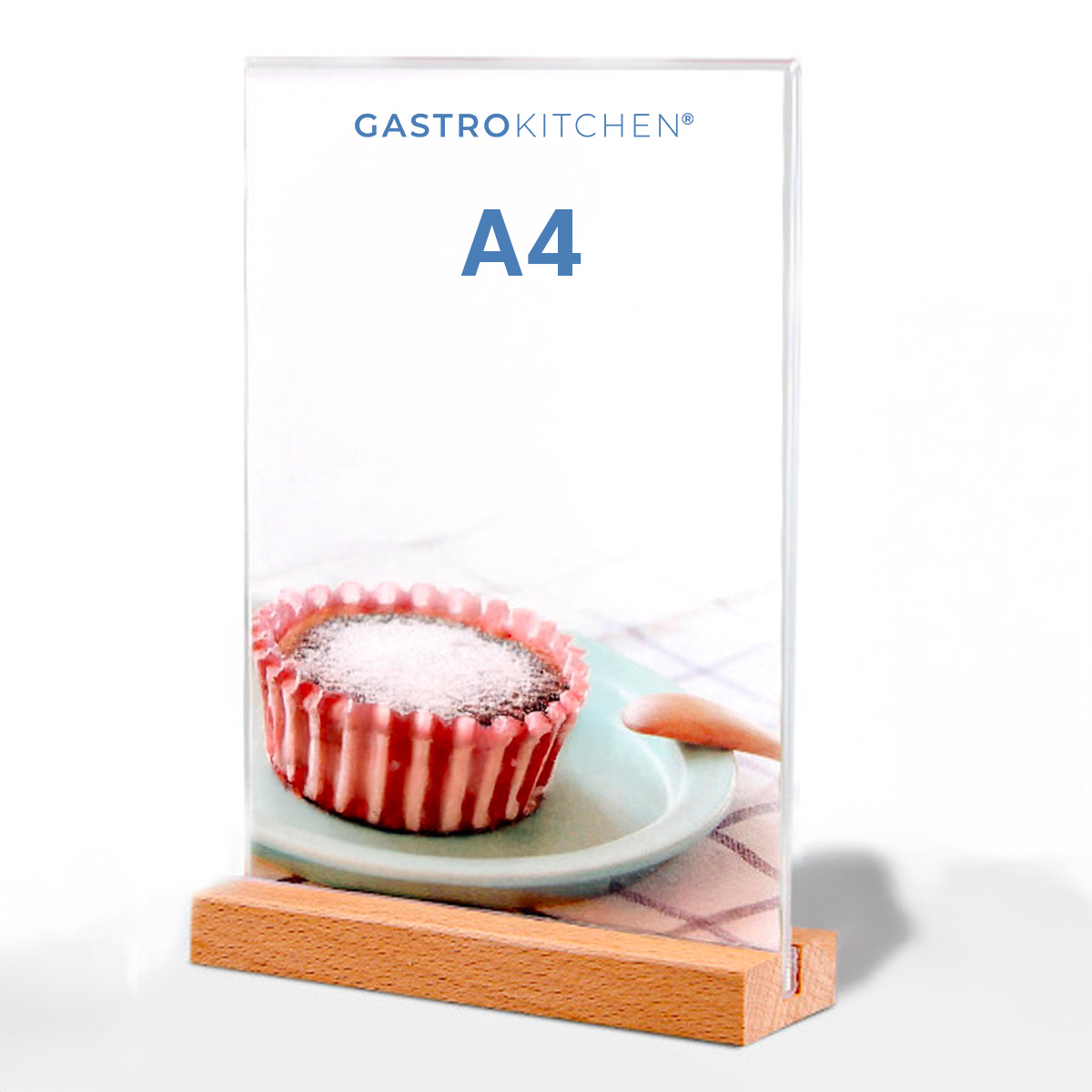 Akrylový stolní stojan A4 s dřevěným podstavcem | Gastrokitchen