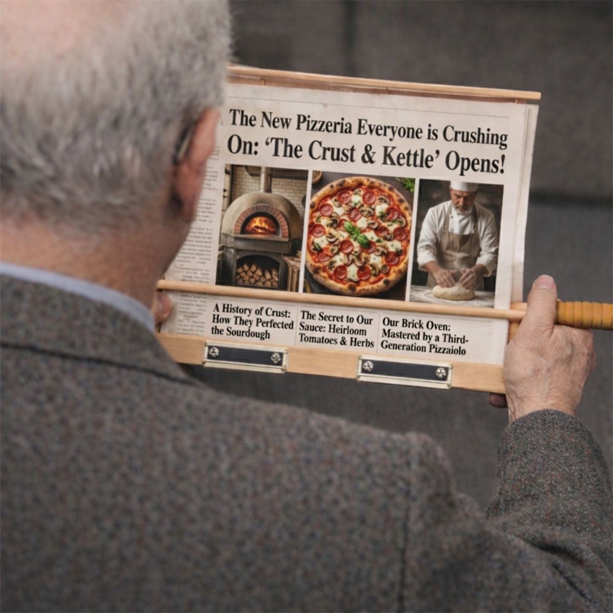 Systém upevnění pomocí klipů umožňuje jednoduše připevnit hřbet novin nebo časopisu k dřevěné liště. Díky tomu je držák vhodný jako praktický doplněk do gastro provozů i jako originální dárek pro vášnivé čtenáře.
