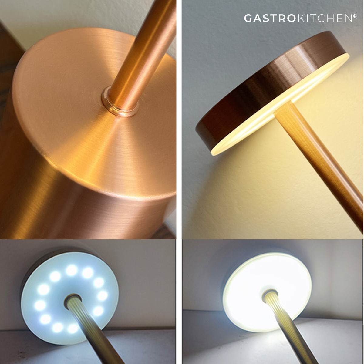 LED stolní lampa USB – nabíjecí – 3 úrovně jasu – růžové zlato | Gastrokitchen