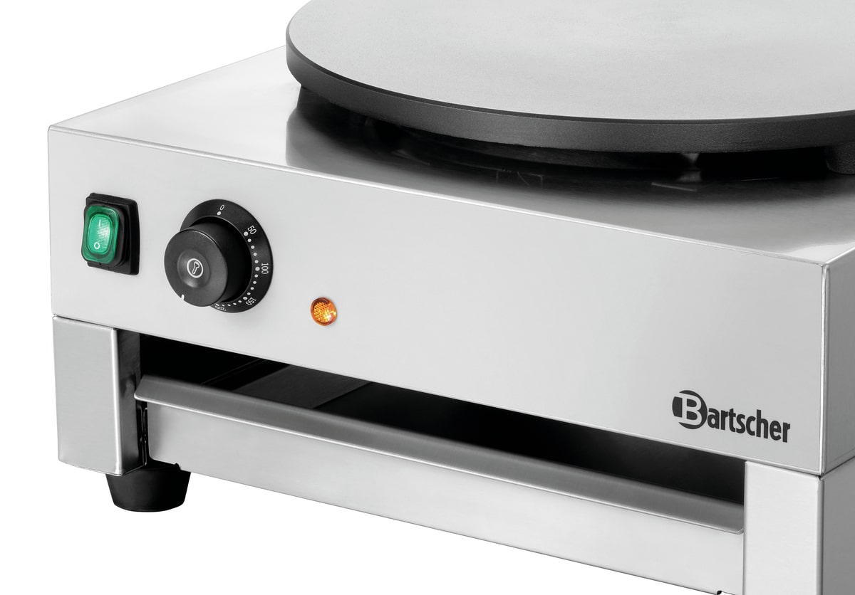 Palačinkovač 1CP400 – 40 cm – 3000 W | Bartscher 104458 disponuje vysoce výkonnou litinovou deskou, která se vyznačuje dobrou tepelnou vodivostí a odolnou konstrukcí. Vypínač zapnutí/vypnutí umožňuje nezávislé používání desky na základě potřeb.