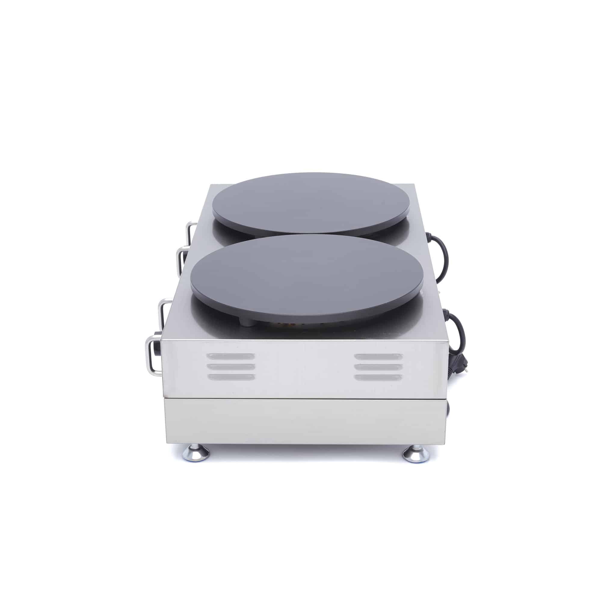 Výkonné zařízení, kde můžete rychle upéct 2 palačinky současně. Palačinkovač je robustní a snadno ovladatelný. Pod plechem na pečení palačinek je odkládací zásuvka, do které můžete skladovat palačinky. Deska je vyrobena z litiny s nepřilnavým povrchem. Kryt z nerezavějící oceli se snadno čistí.