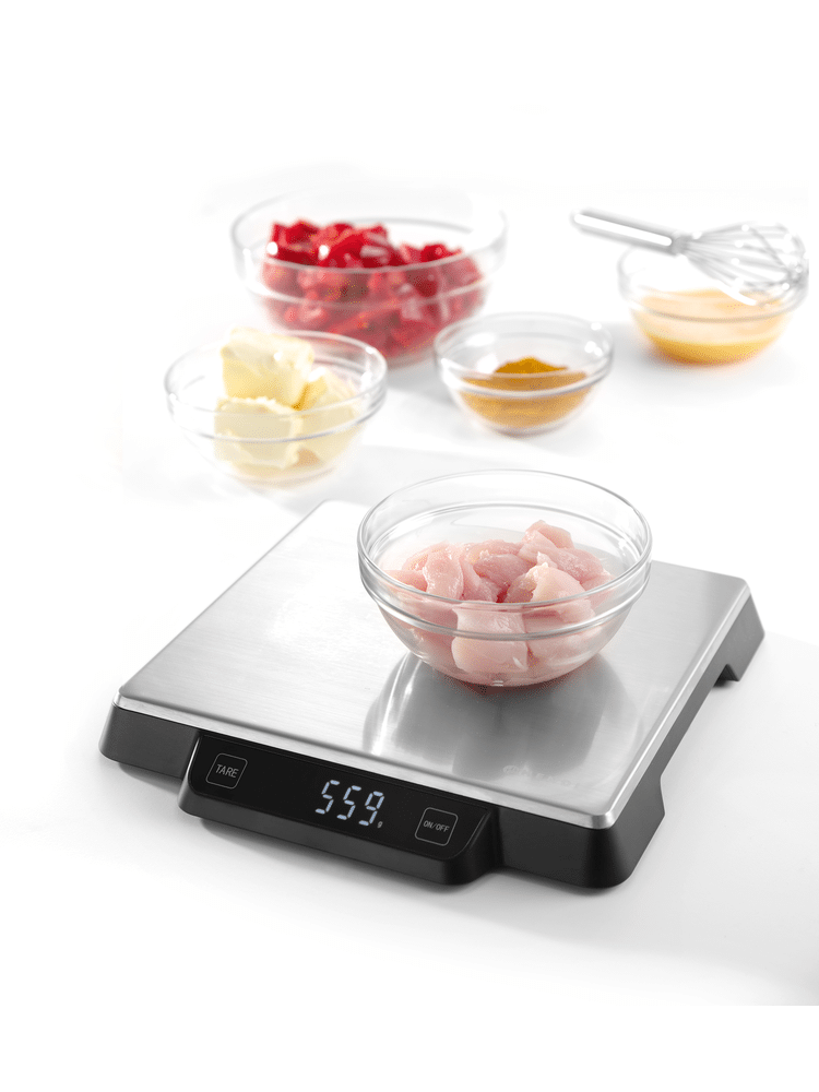 Digitální váha, která se hodí do každé kuchyně pro vážení různých surovin.