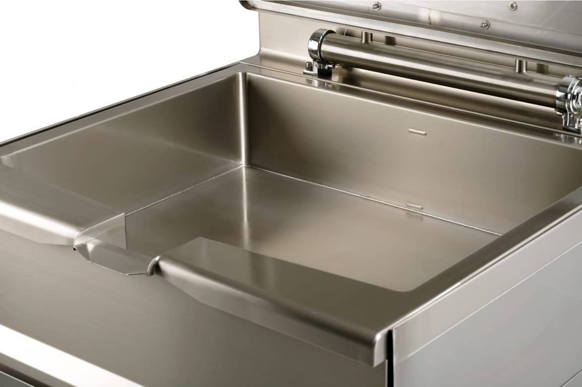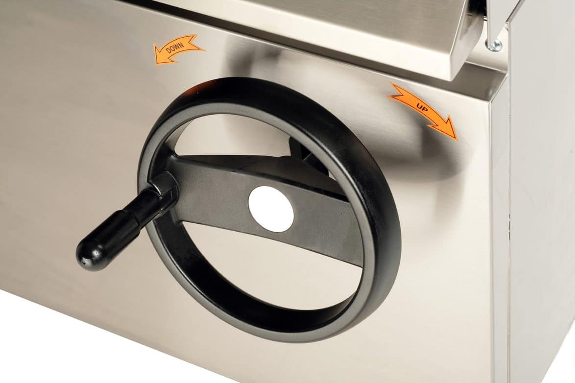 - varnou nádobu je možné ručně vyklápět pomocí otočného kola v pravé části zařízení