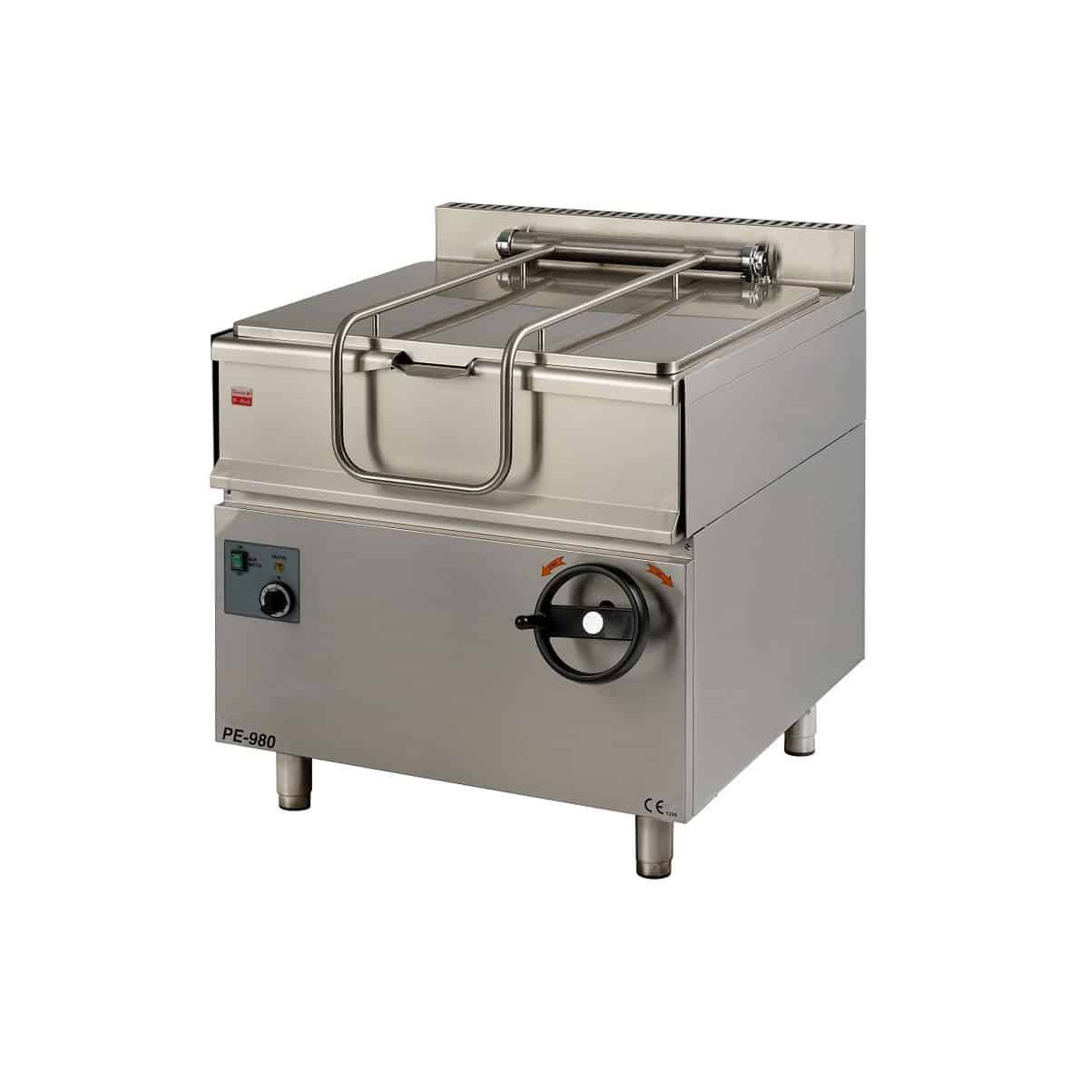 Elektrická smažící pánev – PE-980 o objemu 80 l je vhodná pro tepelnou úpravu potravin smažením v oleji nebo dušením ve vodě.