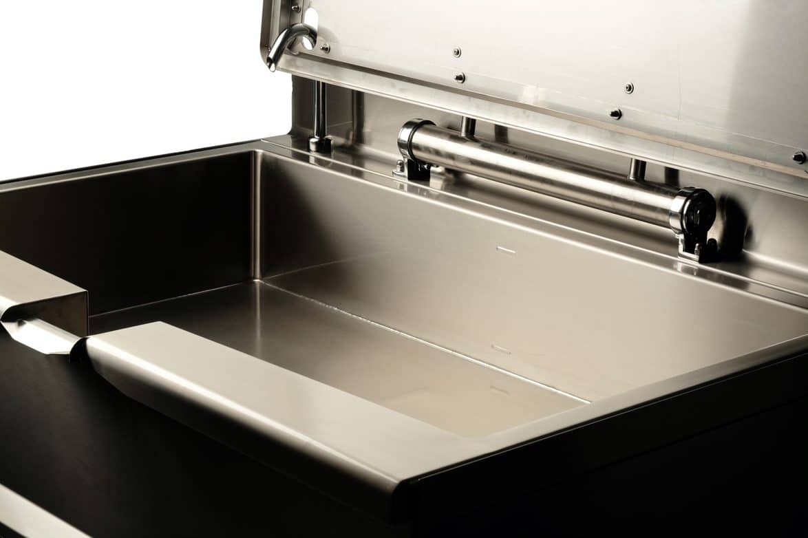 - varnou nádobu je možné ručně vyklápět pomocí otočného kola v pravé části zařízení