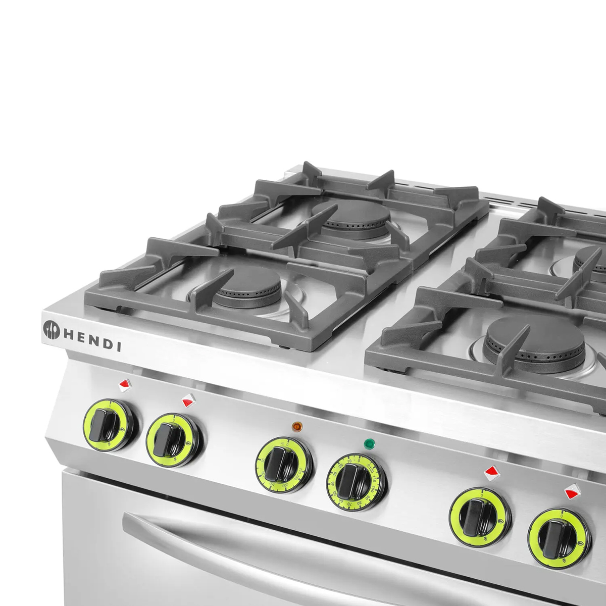 Plynový sporák HENDI, se štyřmi hořáky a elektrickou troubou. Spotřebiče řady Kitchen Line vynikají svou spolehlivostí, ergonomií a kvalitním nerezovým provedením. Díky své univerzálnosti najdou uplatnění v jakékoliv kuchyni.