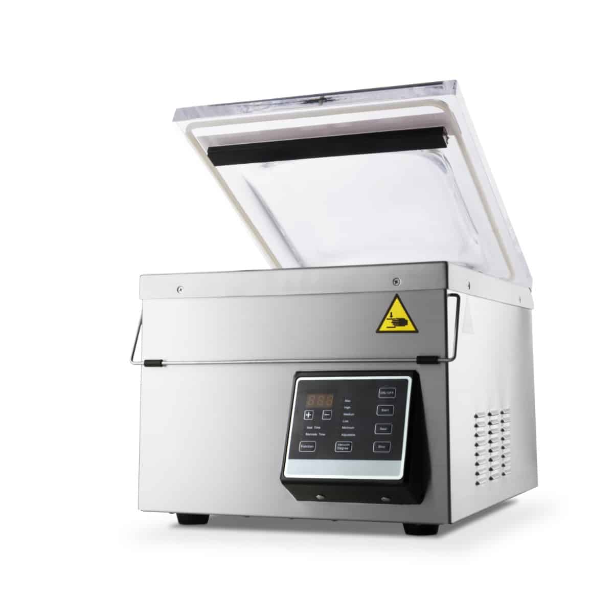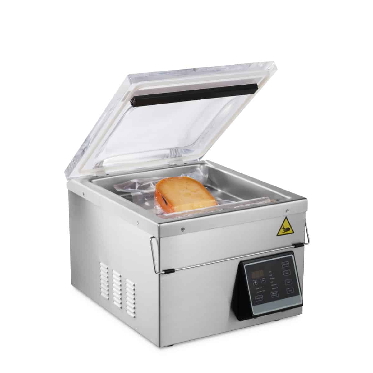 Stroj na vakuové balení – 29 cm těsnění | Maxima 09501202 je vhodný pro skladování potravin ve vakuu. Rychle vytváří praktické malé balíčky, které se dobře uchovávají v chladničce nebo mrazničce. S vakuovými sáčky správné velikosti, které si můžete objednat samostatně, můžete balit i tvrdé sýry, maso a ryby, jakož i ovoce a zeleninu. Vakuové balení zajistí nejen delší trvanlivost vašich výrobků, ale také jejich čerstvý vzhled po zmrazení. Díky kompaktnímu stolnímu modelu vám tento vakuový balič nebude překážet v profesionální kuchyni a můžete jej také snadno uskladnit, když budete potřebovat více místa.