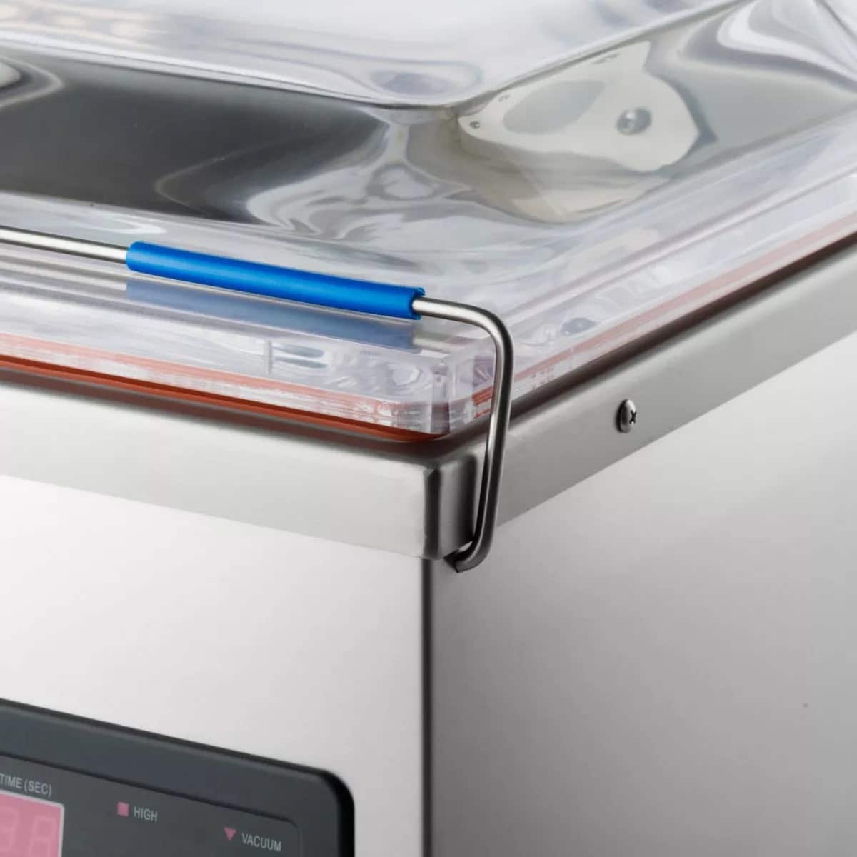 - Uživatelsky přívětivý ovládací panel na přední straně balicího stroje umožňuje nastavit čas zatavení, teplotu zatavení, vakuový tlak a dobu chlazení.