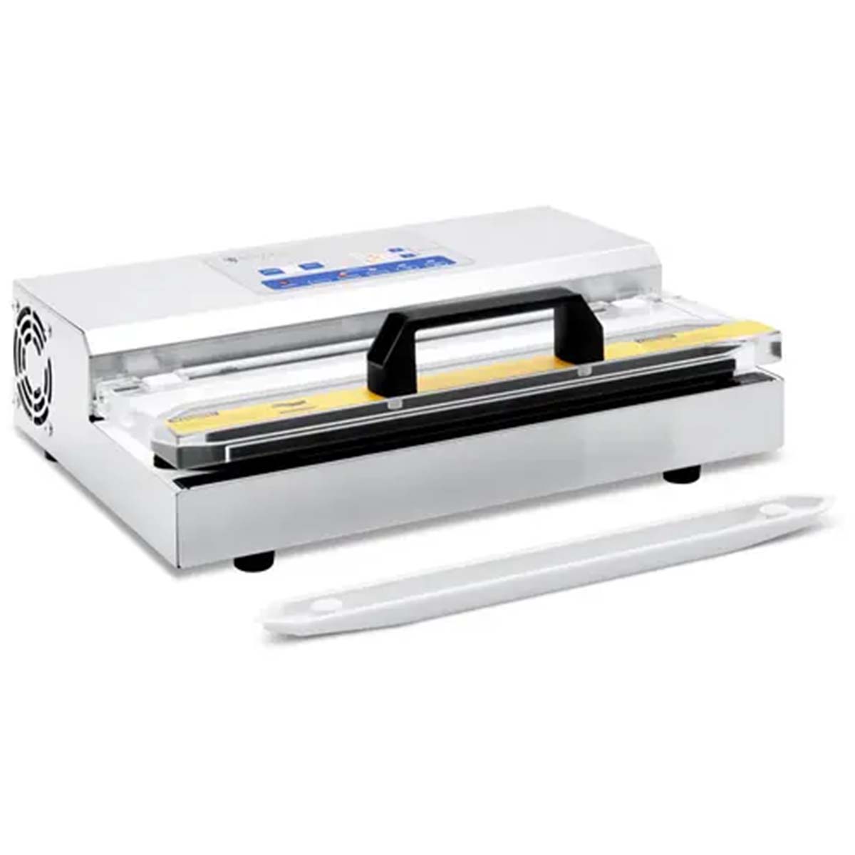 Vakuový balicí stroj – 31 cm | RCVG-40 je kompaktní a výkonný vakuový balicí stroj ideální pro každodenní použití v gastro provozech, jako jsou restaurace, kavárny, jídelny apod. Díky výkonné dvojité vývěvě o příkonu 580 W stroj zajišťuje účinné odstranění vzduchu z plastových sáčků a jejich následné těsné svaření.